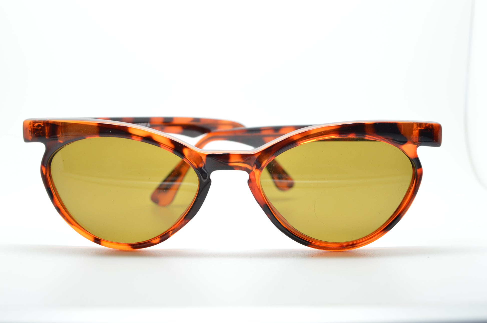 A quality pair of sunglasses, this style features a unique upturned, winged, brow line. This hard to find deadstock, vintage sunglass has never been work, and in great condition. Optical quality frame.